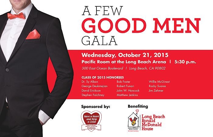 The 2nd Annual A Few Good Men Gala is Long Beach’s newest “can’t miss event.” The evening begins with a cocktail hour including live entertainment, delicious hors d’oeuvres and an enticing silent auction. Guests will enter the spectacular Pacific Room and enjoy a delectable dinner followed by a lively and fun fashion show featuring the evening’s Honorees as “models.” Each gentleman will wear a unique outfit selected just for him from Long Beach’s highly regarded men’s store, Umberto International Clothier. The evening’s highlight will be a live auction of priceless, unique experiences, personally designed by each Honoree.