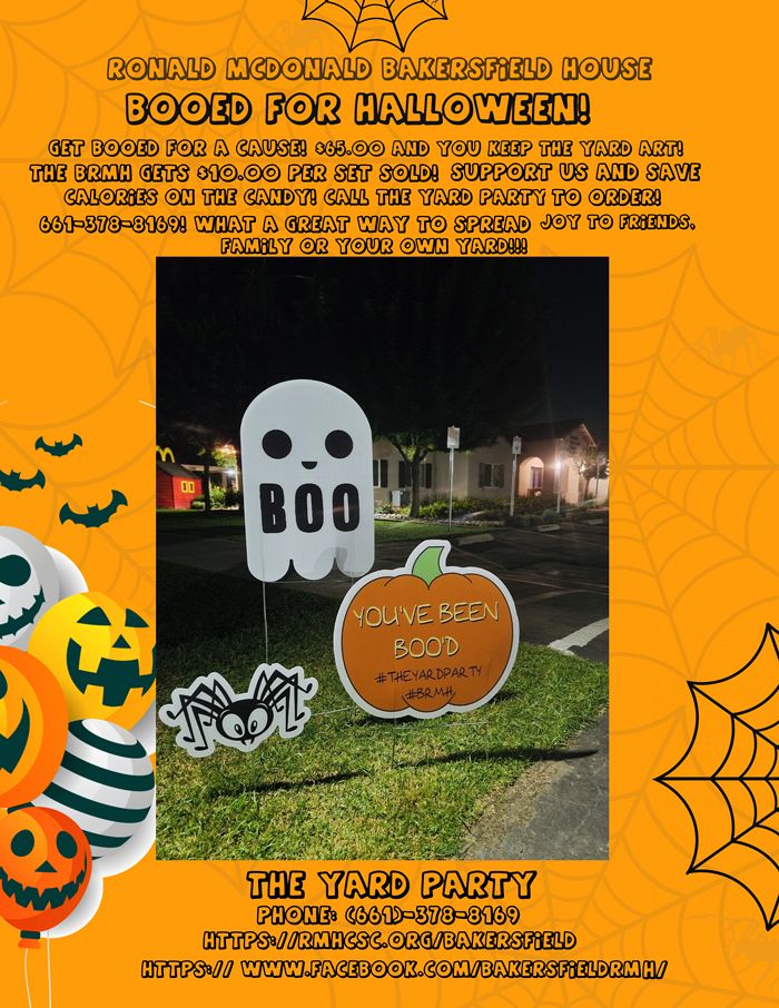 Get Booed for a Cause! $65.00 and you keep the yard art! The BRMH gets $10.00 per set sold!