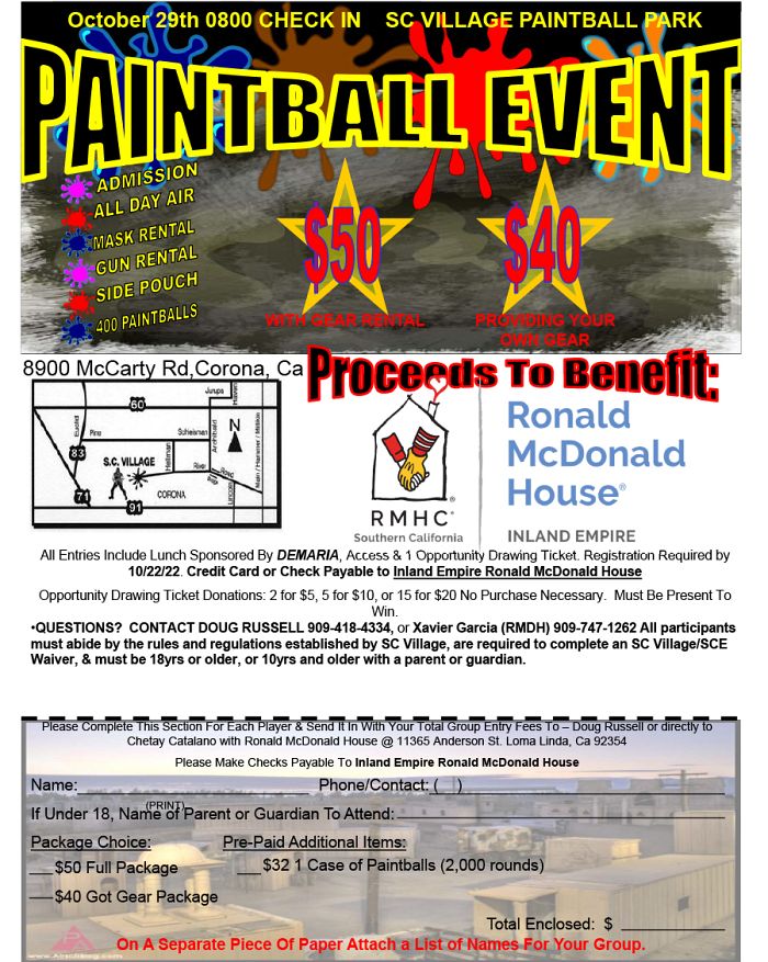 11th Annual Paintball Event - Proceeds to benefit the Inland Empire Ronald McDonald House