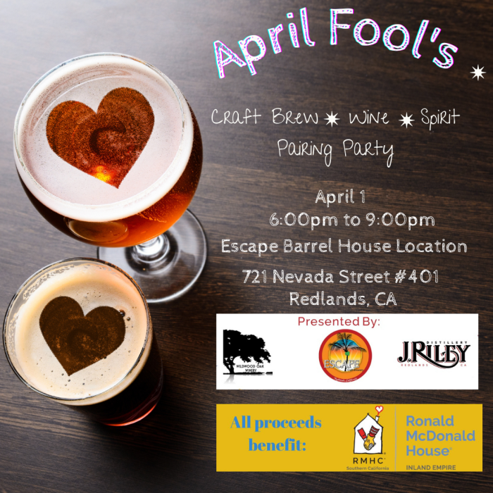 The April Fools Pairing Party brings together the Inland Empire's best in beverages. Melissa Fisher, Anita Matlock, Jason Riley and special guest Jesse Duran will be your guides through this tasty Pairing Party as they give back to their community.