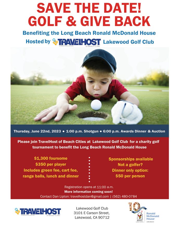 Join TravelHost Beach Cities at Lakewood Country Club for our charity golf tournament benefiting the Long Beach Ronald McDonald House! This Tournament promises to be an unforgettable day of golfing and giving back. The Long Beach Ronald McDonald House, a "home away from home" for families with critically ill children who are receiving treatment at nearby hospitals.