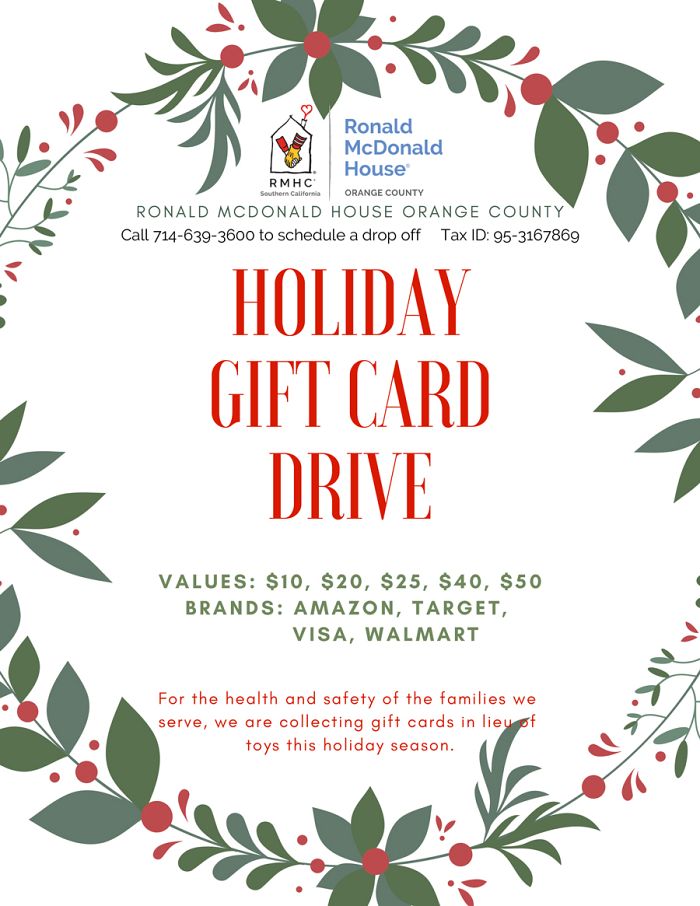 For the health and safety of the families we serve, we are collecting gift cards this holiday season.
