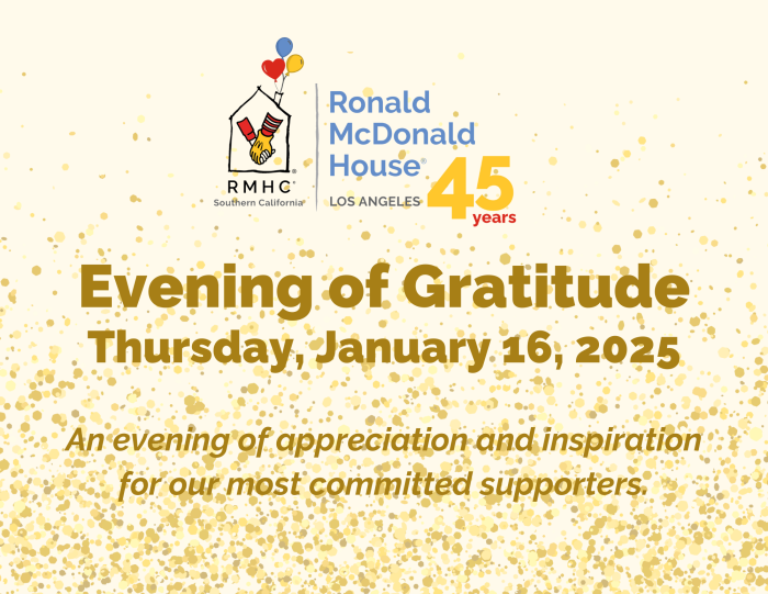 Hors d’oeuvres and beverages will be served on the patio, followed by a short program featuring a former guest family sharing their story of resilience and hope. Complimentary valet is provided and House Tours will be available. Attire: outdoor cocktail dress.