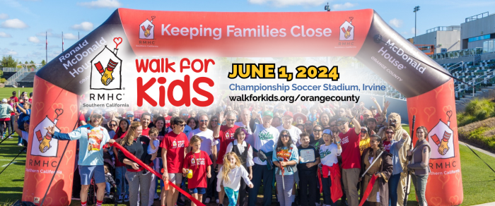 Walk for Kids™ is an annual community fundraiser that supports the children and families who rely on the life-changing services and programs provided by Ronald McDonald House Charities of Southern California (RMHCSC) .