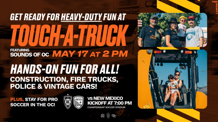 Join our corporate partners, Orange County Soccer Club, for a fun night of construction, fire trucks, police & vintage cards!