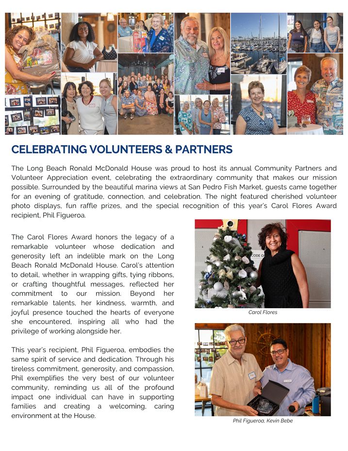 The Long Beach Ronald McDonald House was proud to host its annual Community Partners and Volunteer Appreciation event, celebrating the extrodinary community that makes our mission possible.