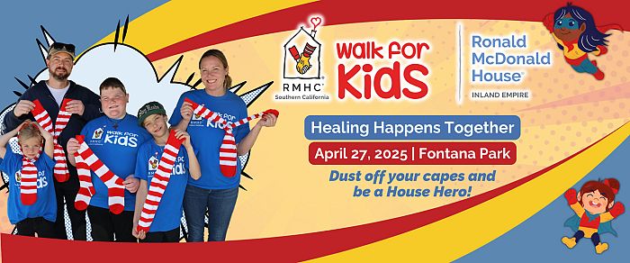 The Walk for Kidsâ„¢ is our largest event of the year, bringing the community together to support children and families who rely on the compassionate care and critical services of the Inland Empire Ronald McDonald House.