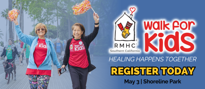 Walk for Kids for Long Beach Ronald McDonald House is on May 3, 2025 at Shoreline Park in Long Beach. Save the date! Hope to see you there!