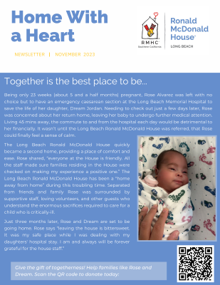 Ronald McDonald Houses located throughout Southern California help families stay close to their child when they need treatment for a serious medical condition. Our Houses provide a home-like setting, close to the region's top hospitals, where families can stay free-of charge for as long as necessary.