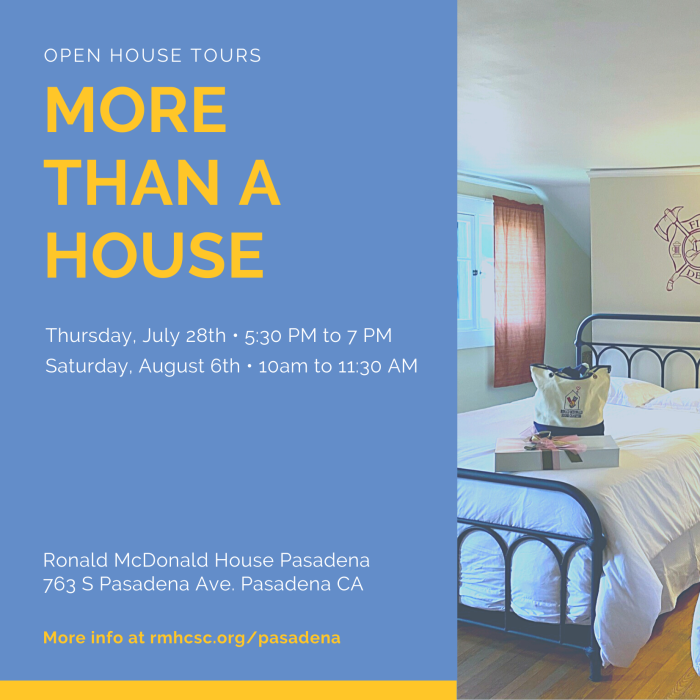 Stop by to join our open house tours at Ronald McDonald House Pasadena and see why we are "more than a house!