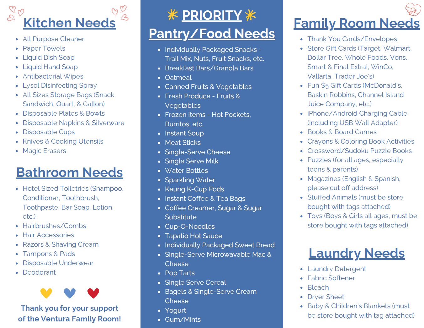 When families walk into the Ronald McDonald Family Room at Ventura County Medical Center, we want them to feel like they're stepping [outside the] hospital setting. The Family Room will give families a place to relax, grab a snack, get some work done, or even get a few hours of sleep…all just steps away from their child's hospital bedside.